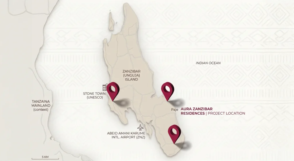 Explore the locations of our real estate projects across Zanzibar. Each point on the map represents a community we are developing — from coastal retreats to vibrant urban neighborhoods. Discover where every project sits and how it connects to the island’s most desirable destinations.